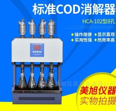 CA-102型标准COD消解器遵循了执行标准(ISO)和国标(GB11914-89)的基本原则,保zheng了回流加热微沸2小时的消解操作,试剂溶液的配制和加入量都和国标法一样,使分析结果可靠准确。